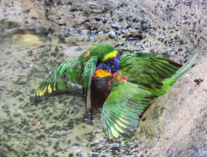 And fighting in the bird bath … can be a colourful affair
